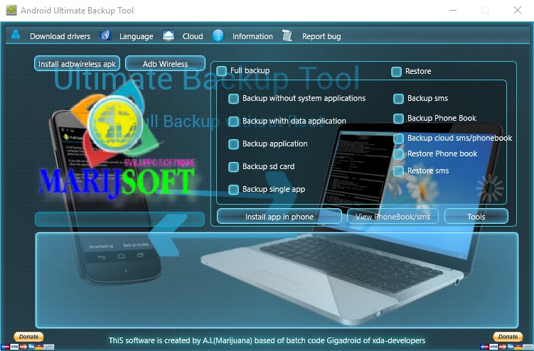 The Ultimate Android Backup Tool by Technical Computer Solutions is a Windows tool created by Marijuana. Use this tool to complete backup for Android phones and tablets. Allow you back up Any Android Phone device without the system Tool